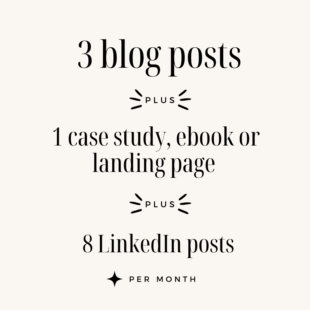 The Elite Package ensures that every aspect of your content marketing strategy is expertly managed. Perfect for brands looking to offload their entire content workload, this package offers a streamlined, stress-free solution to all your content creation demands.