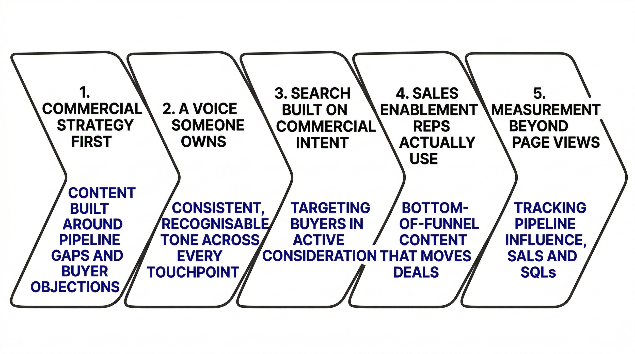 Content without structure is just publishing. It can be well-written, well-distributed, even well-received - and still fail to move anything commercially. That’s because it was never properly connected to how the business grows. When that connection does exist, the whole dynamic changes. Buyers encounter you before they're ready to buy and already trust you by the time they are. Sales teams finally have something they’ll send out without you having to nag them.